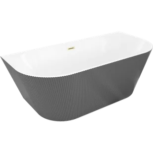 Mexen Oris wanna wolnostojąca przyścienna ryflowana 150 x 75 cm, biała/szara, przelew złoty szczotkowany - 52871507562-55