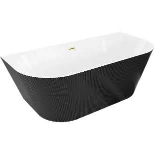 Mexen Oris wanna wolnostojąca przyścienna ryflowana 170 x 80 cm, biała/czarna, przelew złoty szczotkowany - 52871708075-55