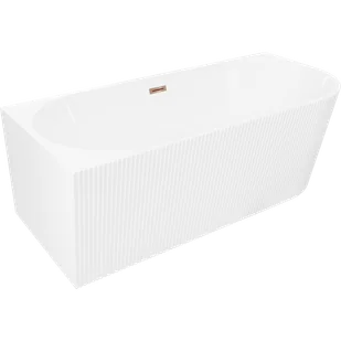 Mexen Silo wanna wolnostojąca narożna lewa ryflowana 150 x 75 cm, biała, przelew różowe złoto - 52891507500L-60
