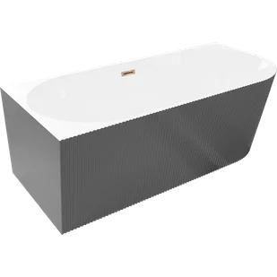 Mexen Silo wanna wolnostojąca narożna lewa ryflowana 170 x 80 cm, biała/szara, przelew różowe złoto - 52891708062L-60