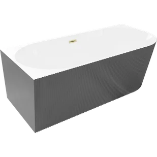 Mexen Silo wanna wolnostojąca narożna lewa ryflowana 170 x 80 cm, biała/szara, przelew złoty szczotkowany - 52891708062L-55