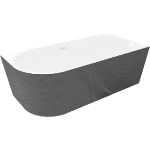 Mexen Silo wanna wolnostojąca narożna prawa ryflowana 150 x 75 cm, biała/szara, przelew biały - 52891507562P-20