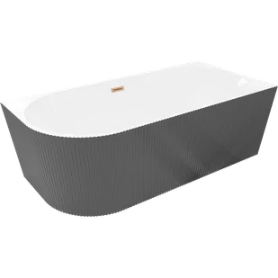 Mexen Silo wanna wolnostojąca narożna prawa ryflowana 150 x 75 cm, biała/szara, przelew miedź szczotkowana - 52891507562P-65