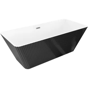 Mexen Tava wanna wolnostojąca ryflowana 170 x 75 cm, biała/czarna, przelew gun metal - 52851707575-95