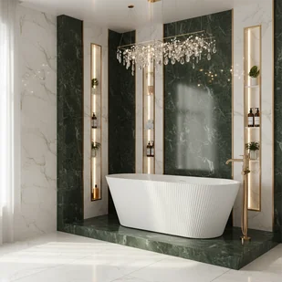 Dzięki swojej wolnostojącej konstrukcji, wanna Ofelia może być ustawiona w dowolnym miejscu łazienki — przy ścianie, w rogu lub na środku pomieszczenia, tworząc elegancką i harmonijną przestrzeń kąpielową. Ryflowana struktura boczna pięknie odbija światło, dodając wnętrzu głębi i wyjątkowego uroku.
