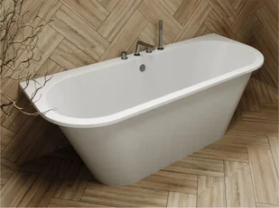 Wanna przyścienna Albenia MIRAGGIO wyprodukowana przy użyciu technologii Miramarble, powierzchnia biała, błyszcząca Wanna przyścienna ALBENIA marki MIRAGGIO ...