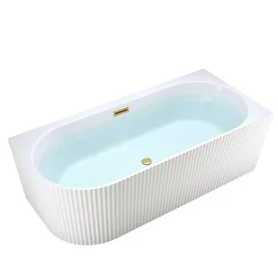 Wanna ryflowana przyścienna narożna prawa korek oraz przelew złoty szczotkowany 160 cm Rio Hydrosan