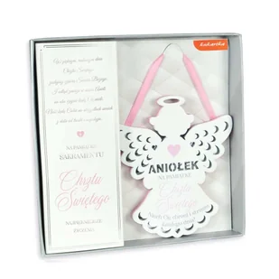 ZAWIESZKA ANIOŁ CHRZEST BIAŁO-RÓŻOWA 14cm