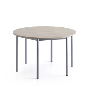 Okrągły blat z laminatu wysokociśnieniowego HPL posiada mocną i trwałą powierzchnię, która jest łatwa w czyszczeniu. Powierzchnia jest dźwiękochłonna, co czyni ten stół doskonałą opcją do sal lekcyjnych.