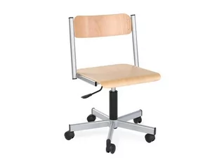 Krzesło szkolne obrotowe junior wyposażone w siłownik oraz drewniane oparcie i siedzisko.