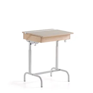 Ławka szkolna z ręczną regulacją wysokości. Blat posiada dźwiękochłonną powierzchnię. Klasyczna ławka szkolna o nowoczesnym designie. Sprawdzi się w trudnych warunkach szkolnych. Elastyczna rama pozwala łatwo dostosować ławkę do krzesła i użytkownika.