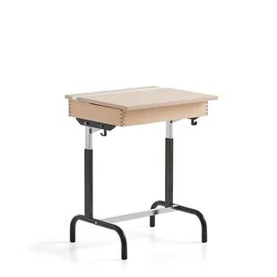 Ławka szkolna z ręczną regulacją wysokości. Blat posiada dźwiękochłonną powierzchnię. Klasyczna ławka szkolna o nowoczesnym designie. Sprawdzi się w trudnych warunkach szkolnych. Elastyczna rama pozwala łatwo dostosować ławkę do krzesła i użytkownika.