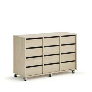 Mobilny mebel szkolny do przechowywania papieru, długopisów, książek i innych materiałów szkolnych. Mebel oferuje szuflady, które pomieszczą papier w formacie A4. Wykonany z wytrzymałego laminatu i wyposażony w koła z blokadą. Mobilny regał służy jako doskonały mebel do przechowywania rzeczy osobistych uczniów w salach lekcyjnych. Jego kompaktowa i pojemna konstrukcja umożliwia przechowywanie wielu rzeczy na niewielkiej powierzchni. Przydziel uczniom własną szufladę do przechowywania papieru, ołówków, książek i nie tylko.