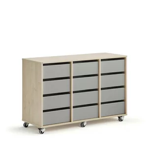 Regał szkolny CASPER, 12 szuflad, brzoza, szary