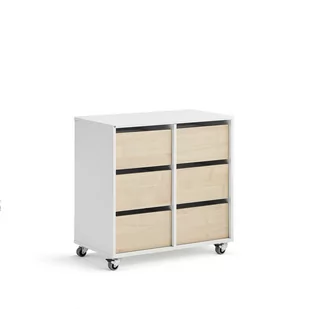 Mobilny mebel szkolny do przechowywania papieru, długopisów, książek i innych materiałów szkolnych. Mebel oferuje szuflady, które pomieszczą papier w formacie A4. Wykonany z wytrzymałego laminatu i wyposażony w koła z blokadą. Mobilny regał służy jako doskonały mebel do przechowywania rzeczy osobistych uczniów w salach lekcyjnych. Jego kompaktowa i pojemna konstrukcja umożliwia przechowywanie wielu rzeczy na małej powierzchni. Przydziel uczniom własną szufladę do przechowywania papieru, ołówków, książek i nie tylko.
