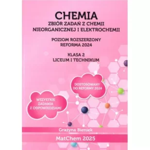Zbiór 394 autorskich zadań z zakresu chemii nieorganicznej i elektrochemii adresowany jest do uczniów klasy 2 liceum lub technikum przygotowujących się do egzaminu maturalnego z chemii na poziomie rozszerzonym zgodnie z wymogami szczegółowymi podstawy programowej realizowanej po szkole podstawowej (Reforma 2024), planujących podjąć studia na kierunkach medycznych, przyrodniczych lub technicznych. Zbiór zawiera zadania z działów: utlenianie i redukcja, elektrochemia, ogniwa, metale, niemetale, zastosowanie wybranych związków nieorganicznych.