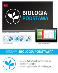 W zestawie: 1× MONITOR AVTEK TOUCHSCREEN 5 CONNECT 65 4× EINSTEIN TABLET+2 1× WIZUALIZER AVER F17-8M 2× pakiet czujników einstein biologia+