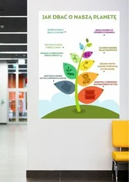 Jak dbać o naszą planetę Naklejka z krótkimi i czytelnymi wskazówkami jak w łatwy sposób na co dzień dbać o naszą planetę. Przyjazna, kolorowa grafika jest wzbogacona o bogate i merytoryczne treści. Wydruk jest bardzo czytelny. Jest przeznaczona do naklejania na rozmaitej powierzchni - ścianie, szafce, szafie, drzwiach.