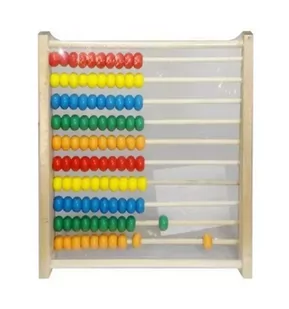 Drewniane liczydło z kolorowymi kulkami. Umożliwia naukę podstawowych funkcji matematycznych.