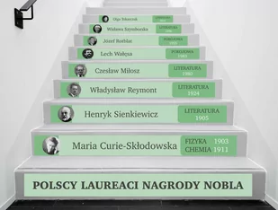 Rewelacyjne,kolorowe naklejki na schody. Zestaw składa się z 9 naklejek z polskimi laureatami nagrody Nobla Każda z naklejek przedstawia jedną postać oraz rok i dziedzinę w jakiej została wyróżniona. Czytelnie skonstruowane przykłady wraz z celnie dobraną kolorystyką, ułatwią dzieciom zapamiętywanie treści. Pojedyncza naklejka ma rozmiar 100x10cm. Nasze naklejki na schody drukujemy na sprawdzonych winylowych foliach samoprzylepnych atramentem z atestem i laminujemy laminatem stałym, aby ich powierzchnia była trwała i nie ulegała zarysowaniu czy płowieniu kolorów.