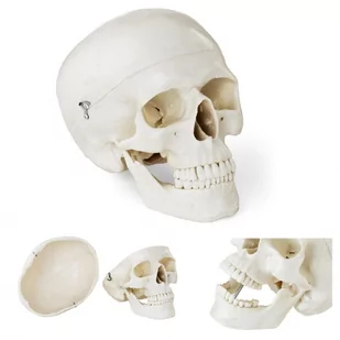 Model anatomiczny - czaszka człowieka Trójwymiarowy model anatomiczny PHY-SK-4 wykonano w skali 1: 1. Czaszka człowieka pokazuje wszystkie funkcje i struktury anatomiczne; prezentuje kości, szczęki oraz zęby. Została wykonana z plastiku. Artykuł marki Physa może być stosowany jako model medyczny, idealny do wizualizacji i celów szkoleniowych w klinikach, gabinetach, szkołach, na uniwersytetach, a także w formie domowej pomocy dydaktycznej do nauki anatomii. Model czaszki - charakterystyka Doskonałe odwzorowanie szczegółów w trójwymiarowym modelu pozwala profesjonalnie wykorzystywać produkt Physa.