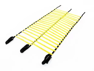 Idealne narzędzie do ćwiczeń kondycji, przyspieszenia, precyzji kroków. Drabinka treningowa może być stosowana zarówno podczas treningu na dworze, ale też dzięki powłoce antypoślizgowej dobrze sprawdzi się na hali. Maksymalnie 9 m długości, 92 cm szerokości Dwa rzędy szczebli koloru żółtego wykonane z PVC Możliwość regulacji rozpiętości szczebli na taśmie Możliwość łączenia ze sobą drabinek za pomocą klamer W zestawie pokrowiec na drabinkę