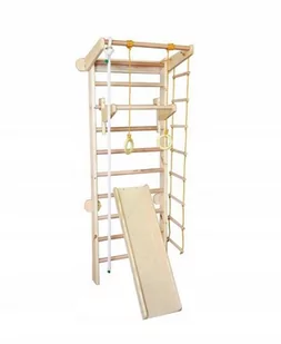 Drabinka gimnastyczna Wood Mood jest rozbudowanym zestawem gimnastycznym do ćwiczeń dla dzieci i dorosłych. Ona wykonana z drewna. Drabinka gimnastyczna w pokoju dziecka sprzyja zużywaniu nadmiaru energii, rozwojowi i wspólnemu spędzaniu czasu rodzeństwa i dzieci z rodzicami, rozwojowi mięśni nóg i rąk oraz siłę chwytu u dziecka. DANE TECHNICZNE Sposób montażu: przyścienny Waga zestawu: