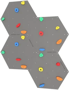 Ścianka wspinaczkowa sześciokątna 4x szara płyta + 20 kolorowych uchwytów