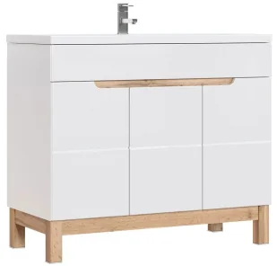 46 cm, wysokość: 84 cm. Kolor: Biały połysk, dąb wotan. Sprawdź także inne s zafki łazienkowe z umywalką w sklepie Edinos. pl. Stwórz swój praktyczny zestaw mebli. W tej ofercie kupujesz szafkę łazienkową 8X oraz umywalkę Vermona 100 cm.