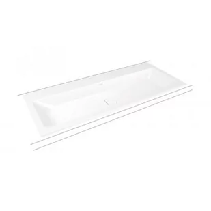 Umywalka wpuszczana w blat z powiesznią uszlachetnioną obustronnie emaliowana wymiary 1200 x 500 x 14 mm odległość od gornego rantu umywalki do końca otworu odpływowego 112 mm w komplecie z zestawem montażowym dostępne wersje bez otworu, z 2 x 1 otwor pod baterię do umywalek podwojnych lub 2 x 3 otwory pod baterię do umywalek podwojnych