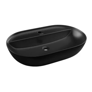 Massi Umywalka ceramiczna nablatowa owalna czarna z otworem i z półką na mydło 60 x 41 cm DECOS Black z rantem Slim
