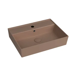 Massi Umywalka ceramiczna nablatowa / wisząca brązowa z półką i otworem na baterie 60 x 45 cm LERA Cappuccino