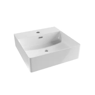 Massi Umywalka nablatowa / wisząca kwadratowa biała z otworem i z półką na mydło 42 x 42 cm SANYA z cienkim rantem typu Slim