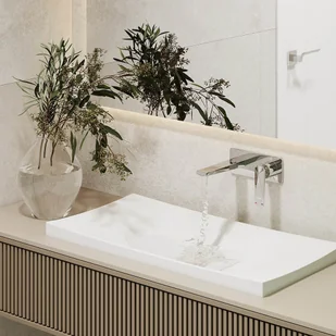 Massi Umywalka wpuszczana w blat biała błyszcząca z konglomeratu bez otworu na baterię OTSE Różne rozmiary