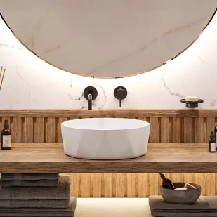 Massi Umywalka z konglomeratu nablatowa okrągła bez otworu na baterię 41 cm PRISMA