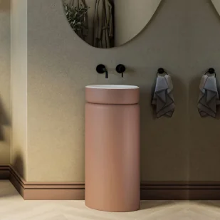 Massi Umywalka z konglomeratu wolnostojąca okrągła 85 x 40 cm RONA Mocha Mousse matt / połysk bez przelewu