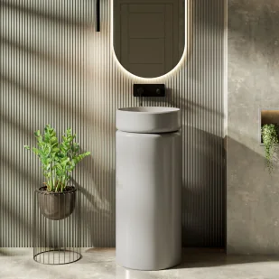 Massi Umywalka z konglomeratu wolnostojąca okrągła szara błyszcząca 85 x 40 cm RONA Grey Glow