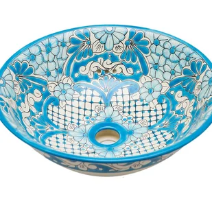 Ręcznie wykonana ceramiczna umywalka nablatowa – do użytku wewnętrznego w łazienkach Ręcznie wykonana, z wykorzystaniem tradycyjnych technik, każda sztuka jest indywidualnie zdobiona, a wzory nakładane są ręcznie na całą powierzchnię, zarówno wewnątrz, jak i na zewnątrz. Dzięki smukłemu, lekko wygiętemu kształtowi, umywalka ta nadaje rzeźbiarski charakter i wyrafinowaną estetykę każdemu wnętrzu. Jej oryginalny design idealnie pasuje do wnętrz w stylu boho, etnicznym lub naturalnym. Najważniejsze cechy Ręcznie wykonana dekoracja Wzory tworzone ręcznie, zgodnie z tradycją Wykończenia widoczne ze wszystkich stron Unikalny wzór dekoracyjny, który tworzy indywidualną atmosferę Wyrazisty element dekoracyjny w łazience Wysokiej jakości materiały Wysokiej jakości szkliwiona ceramika Odporna na mikrozarysowania, wilgoć i środki czystości Kolory pozostają trwałe dzięki ochronnej glazurze Łatwa w utrzymaniu Nieporowata, higieniczna powierzchnia Nie wymaga specjalnych środków czyszczących Proste czyszczenie czystą wodą z delikatnym mydłem Funkcjonalna konstrukcja Wystarczająca pojemność dla komfortowego użytkowania Łatwy montaż na umywalce lub blacie Wyłącznie do użytku wewnętrznego Średnica otworu odpływowego: 4,5 cm Montaż: