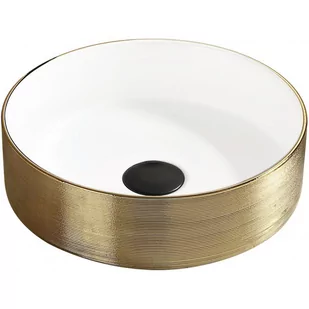 Dane techniczne: Rozmiar: 36,5x36,5x12,5 cm Typ: Nablatowa Kolor : Biały/Złoty Otwór przelewowy: Nie Otwór na baterie: Nie Materiał: Ceramika sanitarna