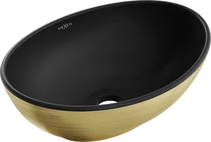 Mexen Elza umywalka nablatowa 40 x 33 cm, czarna mat/złota wzór linie - 21014027