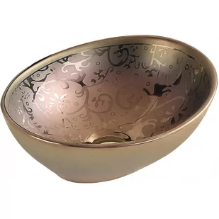 Dane techniczne Rozmiar: 40,5x33x14 cm Typ: Nablatowa Kolor: Złoty Otwór przelewowy: Nie Otwór na baterie: Nie Materiał: Ceramika sanitarna