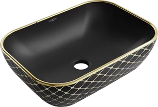 Mexen Rita umywalka nablatowa 45 x 32 cm, czarna mat/złota wzór kratka - 21084579