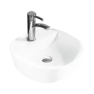 Dane techniczne: Rozmiar: 40x40x12cm Typ: Nablatowa Kolor: Biały Otwór przelewowy: Nie Otwór na baterie: Tak Materiał: Ceramika sanitarna