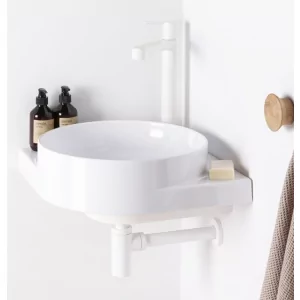 Wszystko, czego potrzebujesz, jest w zasięgu ręki, a jednocześnie sprytnie schowane za krawędzią umywalki. Szczoteczki do zębów, dozowniki i inne drobne przedmioty łatwo znikają i nie zakłócają wrażenia estetycznego łazienki. Co więcej, przechowywane przedmioty nigdy nie wpadają do umywalki.