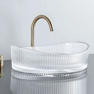 Umywalka nablatowa Harper to eleganckie i nowoczesne rozwiązanie, które nadaje łazience wyjątkowej lekkości. Wykonana z wysokiej jakości szkła o transparentnym wykończeniu, wyróżnia się subtelnym designem i uniwersalnym charakterem, pasującym zarówno do aranżacji klasycznych, jak i nowoczesnych. Model Harper łączy estetykę z funkcjonalnością – solidne szkło jest odporne na codzienne użytkowanie, a gładka powierzchnia wewnątrz misy ułatwia utrzymanie czystości. Przystosowana jest do montażu na blacie lub szafce, co daje pełną swobodę aranżacyjną. Jej nowoczesny design doskonale komponuje się z armaturą w odcieniach złota, czerni czy chromu, pozwalając na stworzenie spójnej i efektownej przestrzeni.