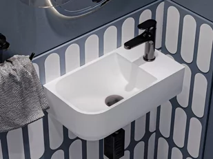Kompaktowa umywalka z lanego marmuru KO L to idealny wariant do małej łazienki. Pomimo niewielkich rozmiarów, pojemna misa i zewnętrzny zaokrąglony kąt zapew...