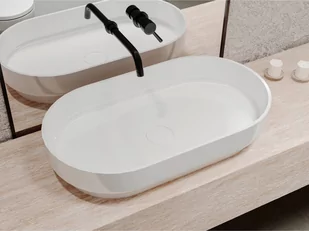 Umywalka z lanego marmuru MARTA 750 to perfekcyjna geometria formy. Zwężający się postument dodaje lekkości i elegancji designowi. Umywalka przewiduje bateri...