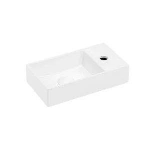 Zintegrowany otwór na baterię pozwala na łatwy montaż armatury, a lekka konstrukcja (waga 6 kg) sprawia, że umywalka jest prosta w instalacji. Niewielka głębokość i smukły kształt pozwalają wykorzystać ją nawet w bardzo ograniczonej przestrzeni, bez utraty wygody użytkowania. Korek click-clack nie jest wliczony w cenę.
