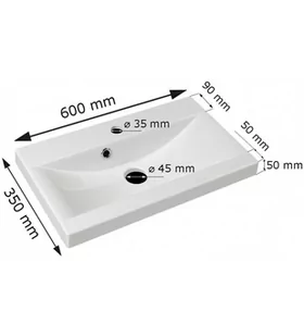 <p><span class="title">Opis produktu</span></p><table class="table table-hover js-table-preview table-preview"><tbody><tr><th colspan="3" class="col-sm-3 table-title" style="text-align: center;">Wymiary</th></tr><tr><td class="hidden-xs col-sm-3"> </td><th class="col-xs-3">Szerokość</th><td class="col-xs-9 col-sm-6">60cm</td></tr><tr><td class="hidden-xs col-sm-3"> </td><th class="col-xs-3">Wysokość</th><td class="col-xs-9 col-sm-6">5cm</td></tr><tr><td class="hidden-xs col-sm-3"> </td><th class="col-xs-3">Głębokość</th><td class="col-xs-9 col-sm-6">35cm</td></tr><tr><th colspan="3" class="col-sm-3 table-title" style="text-align: center;">Dane szczegółowe</th></tr><tr><td class="hidden-xs col-sm-3"> </td><th class="col-xs-3">Wybarwienie</th><td class="col-xs-9 col-sm-6">Biały</td></tr><tr><td class="hidden-xs col-sm-3"> </td><th class="col-xs-3">Średnica otworu spływowego</th><td class="col-xs-9 col-sm-6">Ø45mm</td></tr><tr><td class="hidden-xs col-sm-3"> </td><th class="col-xs-3">Średnica otworu montażowego baterii</th><td class="col-xs-9 col-sm-6">Ø35mm</td></tr><tr><th colspan="3" class="col-sm-3 table-title" style="text-align: center;">Dodatkowe informacje</th></tr><tr><td class="col-xs-9 col-sm-6" colspan="3" style="text-align: center;"><p>Umywalka z lanego marmuru, którą charakteryzuje bardzo duża twardość, odporność na przebarwienia i zarysowania oraz wysoka wytrzymałość na niskie i wysokie temperatury.