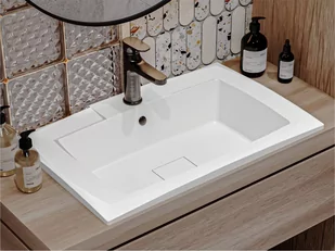 Prostokątna wpuszczana umywalka z lanego marmuru TORONTO przyciąga wzrok szerokimi bokami. Głęboka misa zapobiega rozpryskiwaniu się wody. Model można z łatw...